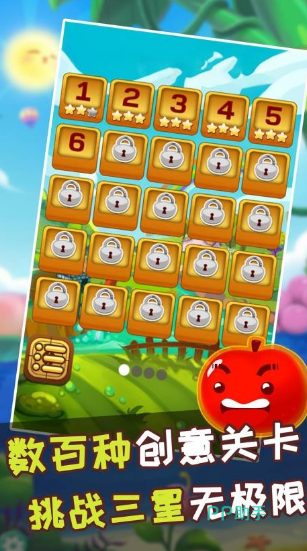 画面是精心设计的萌萌哒的水果和蔬菜,只需要把相同图案的水果或蔬菜连成一串,就能让它们消失,成功过关。重要的是每关都会有不一样的挑战,比如要消灭某种水果或蔬菜达到一定数量才可以过关,这时候就需要大家规划好每一步,不然就算分数够了也过不去。不管是新手小白还是游戏高手,都可以找到适合自己的关卡和玩法。