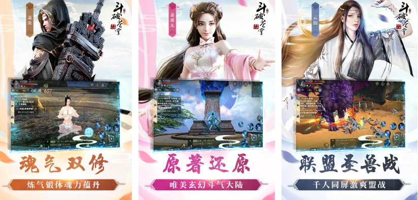 《斗破苍穹:斗帝之路》是原作、动漫和影视联合出品的一款手游,所以剧情完全还原原著,地图人物的设计也与动漫极其相似,是3d类型的mmo手游。游戏中所有角色都是魂气双修,所以战斗时技能释放十分爽快,而热门的联盟圣兽战还可以同时容纳千人,是目前游戏中最受欢迎的玩法。对于部分喜欢捏脸的玩家,游戏也做出了升级,大家可以任意更改脸部的任何特征!
