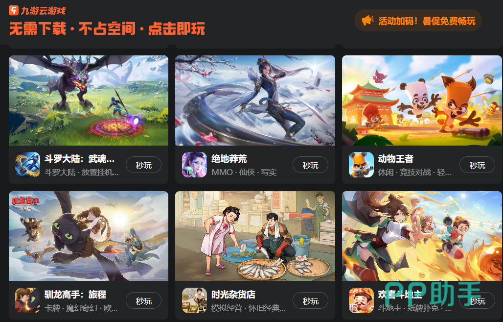 通过上述介绍,大家应该了解了九游云游戏的相关信息。九游云游戏官网入口就是九游的官网,您只需在浏览器中输入“九游”即可轻松找到,玩家不用担心电脑内存不足了,平台中各种类型游戏,感兴趣玩家赶紧去体验一下吧。
