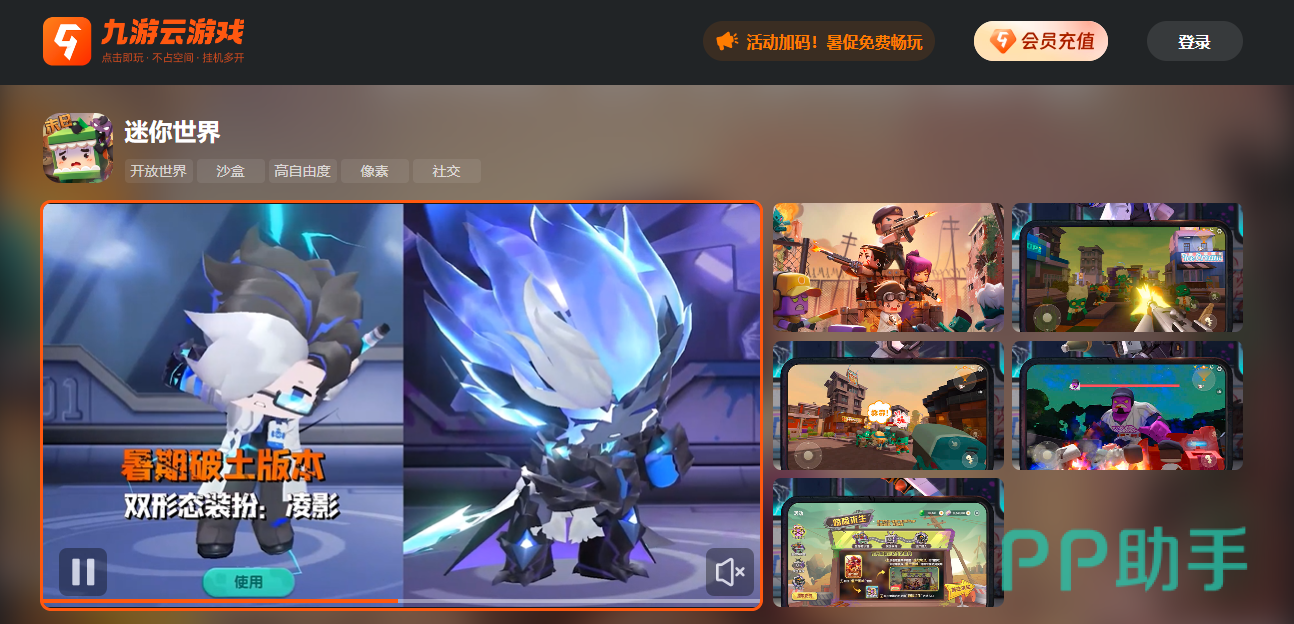 九游云游戏是一个无需大家下载就能立马玩游戏的平台,像迷你世界这样高自由度的沙盒游戏都是能够立马上线的,这样小伙伴们再也不用去下载游戏了。