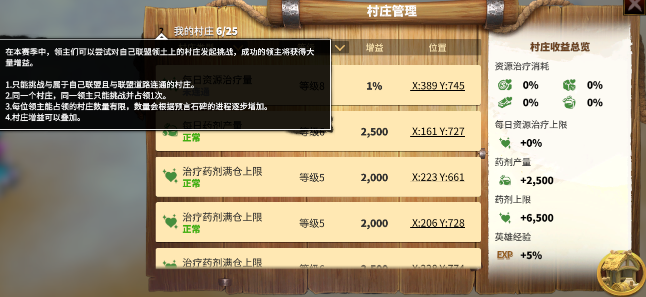 村庄是可以被多个领主占领的,不过对于不同等级的村庄来说,占领者的人数是有上限的,领主可以对占领者的列表中不属于村庄归属联盟的领主发起挑战的,挑战成功之后,会代替该领主成为新的占领者。随着地图进度推进,那么大家可以占领的“村庄”的数量会增多,目前最多是可以占领25个,所以对于等级高的玩家来说,尽量占领“高等级”的村庄就可以了。
