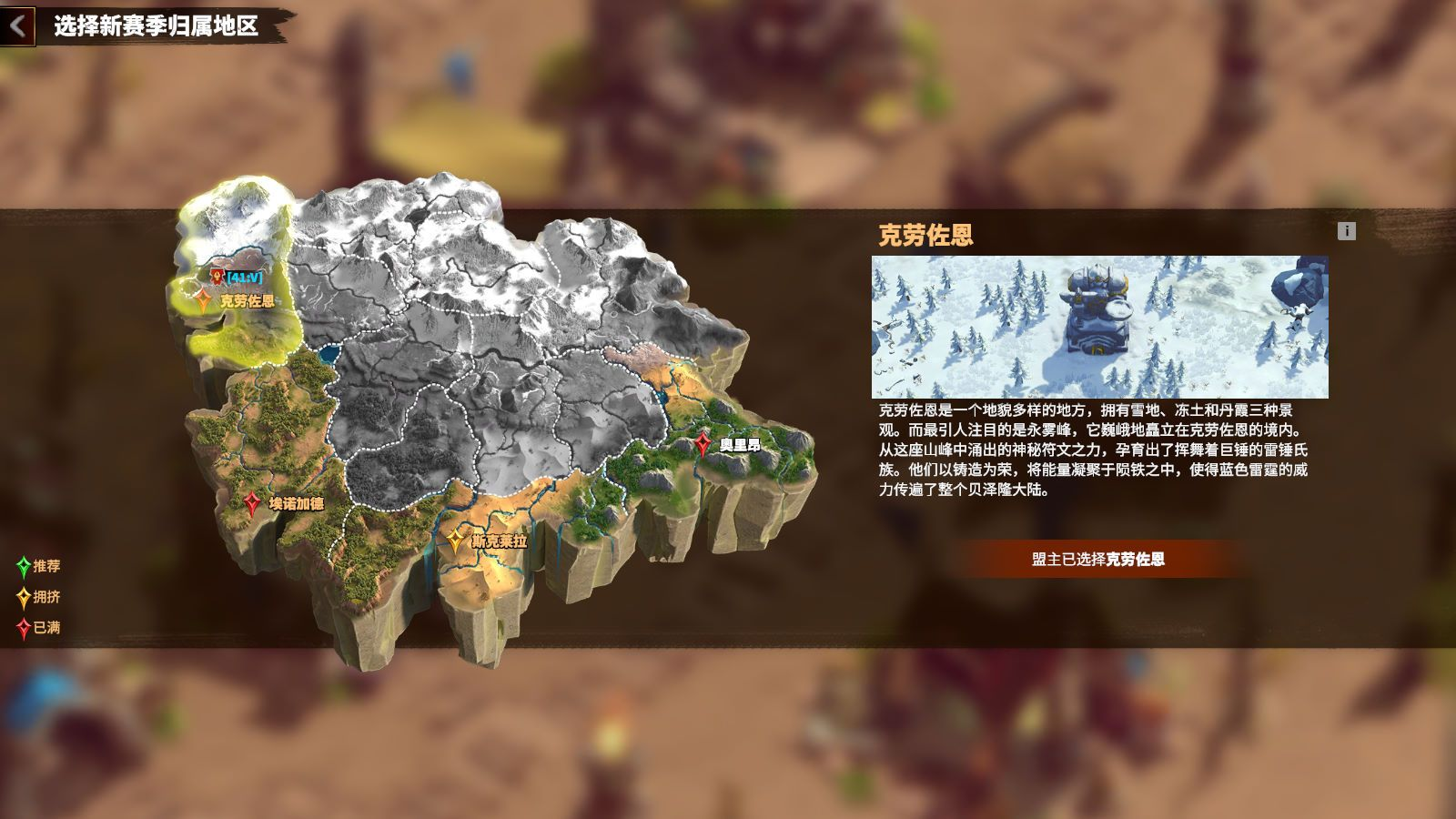 如果有领主还没有加入到联盟当中,或者说和盟主不处于一个服务器的话,那么是可以自行选择新赛季的归属地区的,如果没有在预选阶段就选择好,新赛季开始的时候是要重新选择归属地的。领主是能优先选择处于不在拥挤状态的地区,在新赛季归属区预选的阶段,也是能自行去切换选择的地区的。处于预选阶段时,即使是盟主发生了变更,选择好的归属地也是会保留下来的,新的盟主也是可以更换到其他地区的。