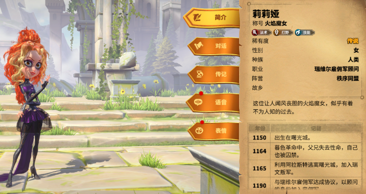 传说级(橙卡):伍加德、玛德琳、埃莫瑞斯、巴吉、克岚西、拉法林、莉莉娅、妮可、尼尔科、忒伊亚、霍斯克。