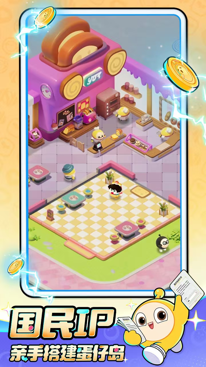 游戏在三消作为核心的基础上,为大家打造了一个非常温馨治愈的蛋仔岛,具备了模拟经营的一系列玩法。进入游戏后并,没有太长的文字剧情,大家只需要和之前熟悉的蛋仔进行简单互动,就可以指引大家进行闯关建设。通过消除闯关获得瓶盖,然后建设自己的岛屿,用完瓶盖之后继续通关赚钱,然后接着进行建设,这是游戏的主要玩法脉络。采用这样简单的逻辑贯穿游戏始终,将闯关与建造很好的融合起来。大家除了可以感受到消除成功的成就感之外,更是可以亲眼见证蛋仔岛在大家的努力下逐渐繁荣,随着建筑群的不断落地,也会吸引更多的蛋仔在岛上和大家一起玩耍。
