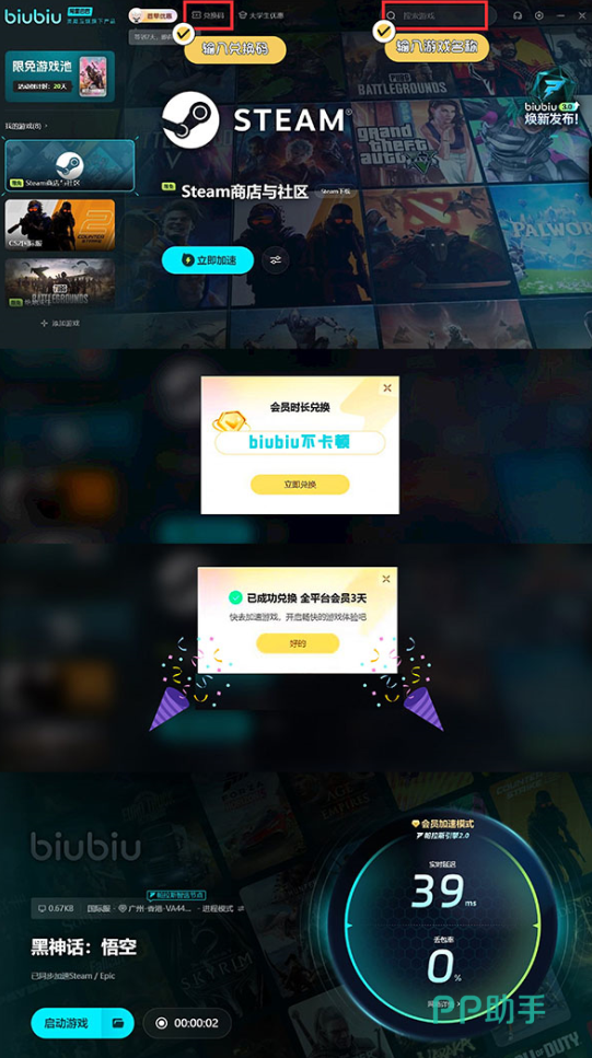 大家想要顺畅的在steam平台下载本作,不希望一些莫名的网络问题影响自己的下载网络环境的话,这时可以点击上方的链接下载biubiu加速器,它能够为本作提供下载加速的服务,使用biubiu加速器一键加速游戏下载网络,帮助各位“天命人”更快速的下载游戏。现在新用户下载能享受24小时的免费体验时长,新老用户均可以使用兑换码【biubiu不卡顿】额外得到免费的3天时长。