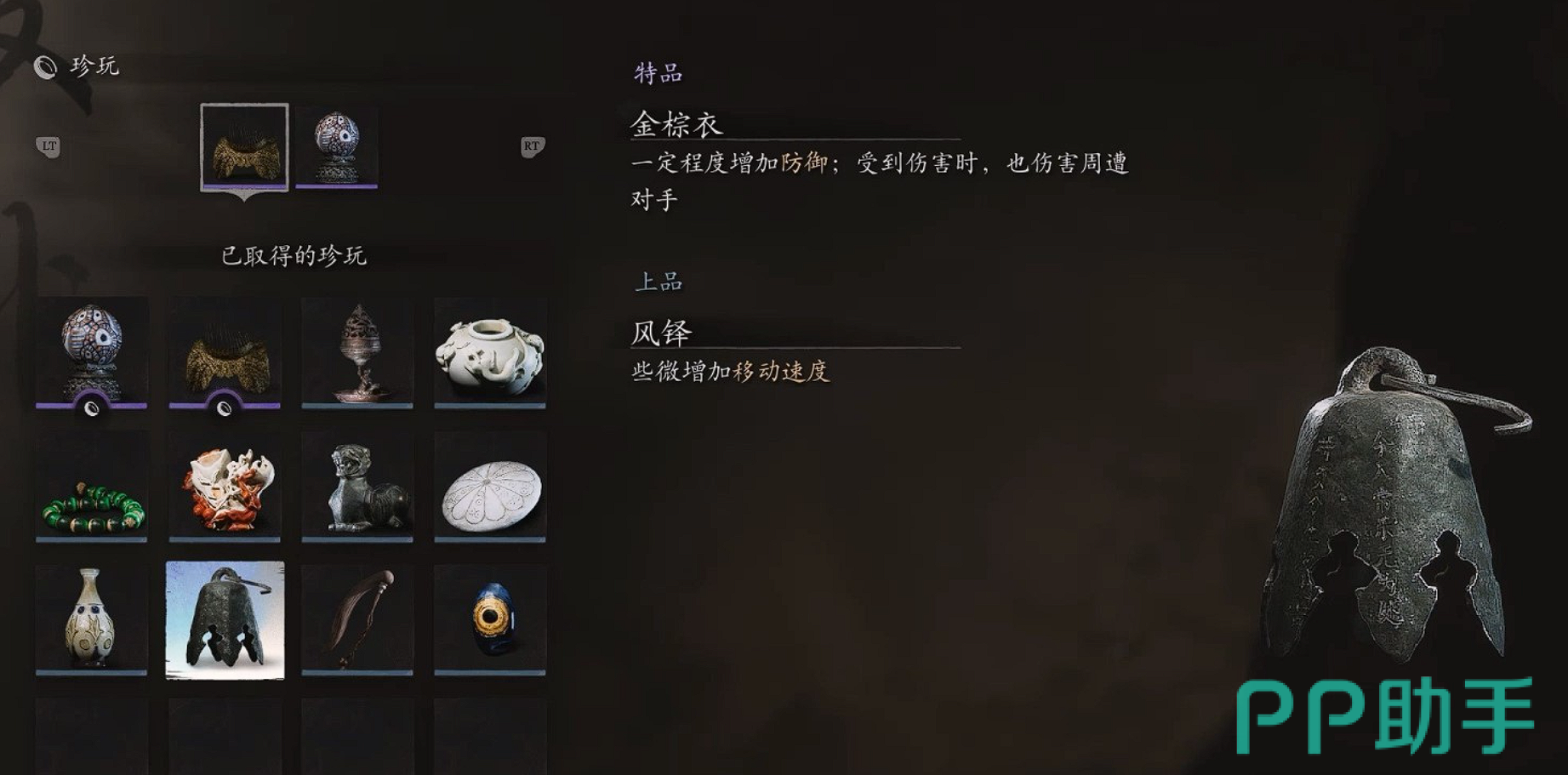 黑神话:悟空的珍玩系统为玩家带来了丰富的收集乐趣与策略深度。通过合理搭配和运用珍玩,玩家可以显著提升角色的战斗能力和生存能力。甚至打造出自己的特色玩法,而游戏中的隐藏珍玩更是为玩家提供了探索的无穷动力!