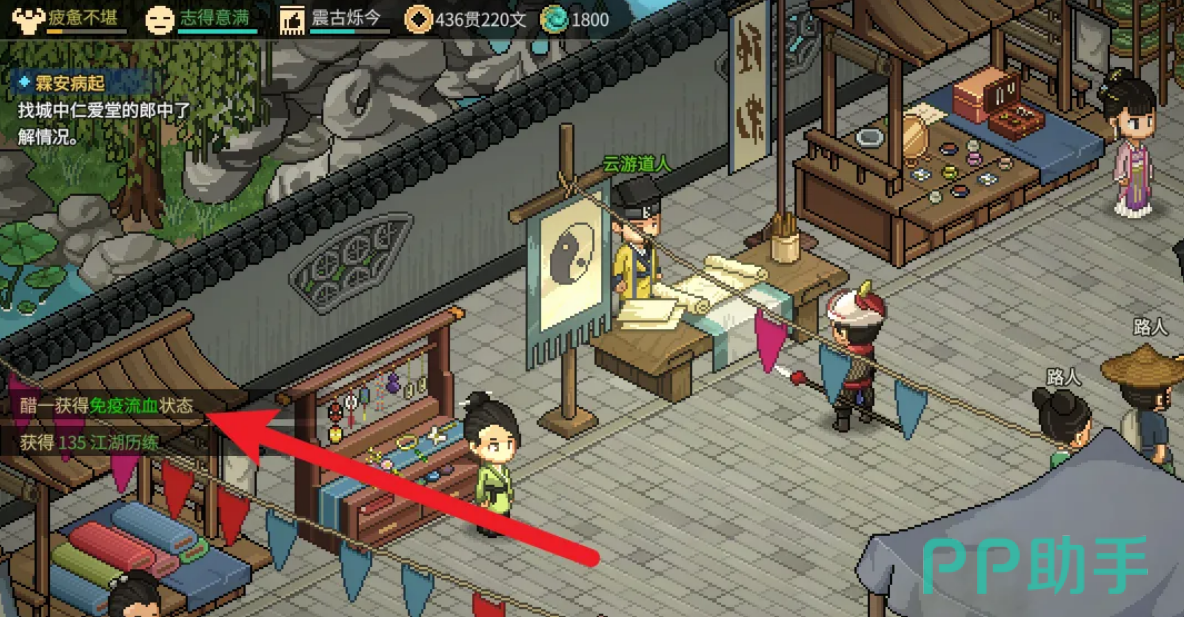 当玩家选择奉上5贯钱请教破解之法后,云游道人会传授你免疫流血的状态。这个状态将以天赋的形式存在,让你在战斗中无惧任何流血效果,无论是来自敌人的攻击还是环境的影响。