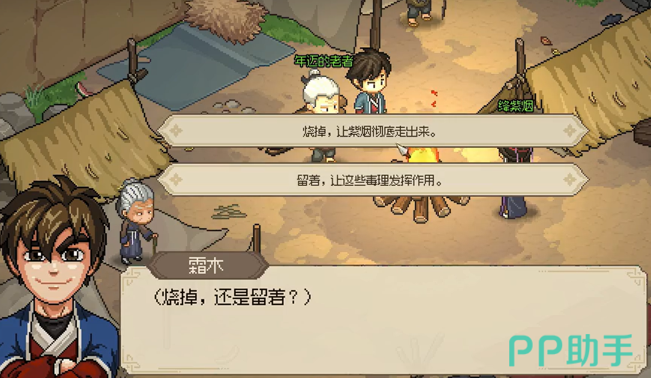 在经历了九黎部落的种种考验后,玩家将面临一个关键的选择:是烧毁毒物,让绛紫烟彻底摆脱过去的阴影,还是保留它们,以发挥其毒理的作用。不同的选择将带来不同的结果。前者则会让绛紫烟特性的提升,直接得到【毒出六腑】这个特性 ,后者则会获得珍贵的绝毒残篇。