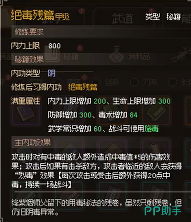在大侠立志传最新版本中,玩家们将有机会探索更为复杂的伙伴事件和故事情节。其中,绛紫烟的故事线尤为引人注目。今天小编就带来大侠立志传绝毒残篇获取方法。她不仅拥有独特的背景和性格,更与游戏中的绝毒绝学紧密相连。让我们一起接着往下看吧。