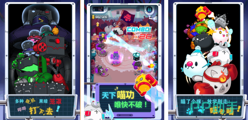 块猫对对碰这款弹射类冒险的休闲小游戏也很有创意,小猫形象的球球看上去很滑稽而且交互性较强,玩家可发射这些小猫形象的小球完成各种对对碰任务,喵喵的音效结合真实的碰撞消除效果深入人心,色彩鲜艳的背景与耀眼特效也给大家带来视觉盛宴,街机般操作手感结合特殊的消除机制也是本作亮点。