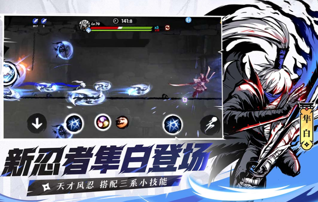 忍者必须死3应该是炎魂公司最具代表性的一款横版忍者跑酷游戏,玩家会化身造型帅气的小忍者在水墨背景中自由奔跑,利用刃具和忍术可轻松消灭敌人并破解机关,诸多的原创玩法让这款跑酷游戏内容更加多样,限时逃生、对战BOSS等超刺激的元素也吸引了大量粉丝,新鲜有趣的跑酷玩法深受忍者游戏爱好者的喜欢。