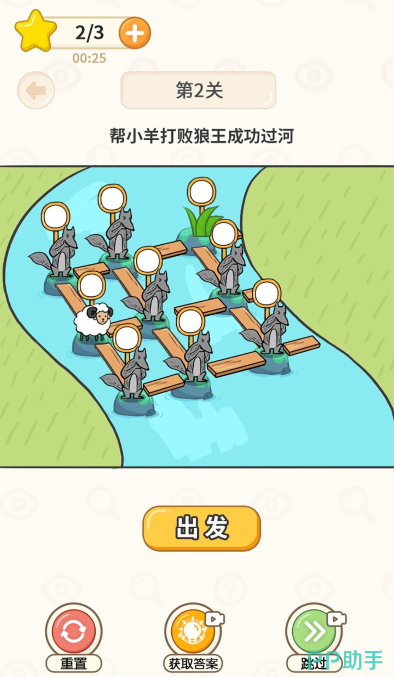 在《过河大师》中玩家需要为你的小羊利用一切办法来过河,期间还有着可怕的大灰狼来阻拦你过河,并且玩家还可以帮助北极熊来过河等等。有趣的是,每一关的过河玩法都有着未知的解谜元素等着大家来破解,而且游戏中还有着重置的功能,这可以帮助玩家提升过关的胜率。