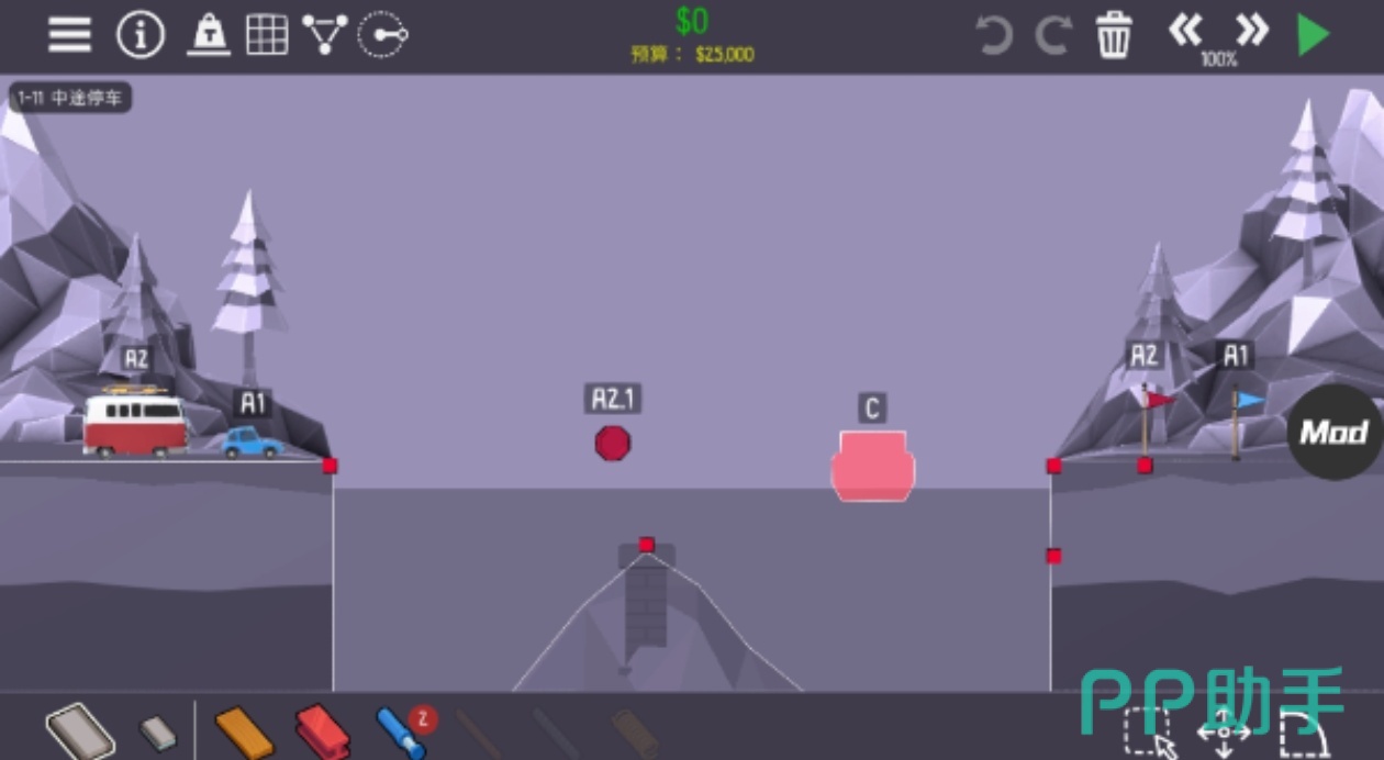 在该游戏中玩家可以自己亲自来设计桥梁的结构,而且还要不断试验你的桥梁坚固程度。除此之外,游戏中的桥梁建造系统是非常完备的,不仅材料工具齐全,还有着一些辅助物理建桥的功能来给玩家们游玩。有趣的是,游戏中还有许多桥梁建造的任务来给玩家们有方向的设计桥梁。