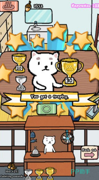 在这个小乐园里,最吸引人的是温泉,大家要做的就是照顾好来泡温泉的小动物们,给它们提供各种服务。休息区也很重要,你放的设施越多,赚到的橡子就越多,每多一个设施都有额外的奖励。随着来温泉的小动物会越来越多,温泉池会变得拥挤,这时候就可以用赚到的榛果来买新的温泉设施或者升级温泉馆,让它变得更宽敞豪华。