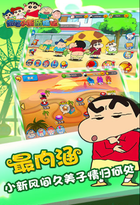 《蜡笔小新历险记》,一款以蜡笔小新动画为题材的休闲解压游戏,幽默可爱的q版画风与小新相契合,让许多动漫党都赞不绝口。在游戏玩法上十分多样,闯关挑战与搜集养成相结合,大大提升了玩家们对玩法上的多样需求,搜集装备提升实力,养成角色应对诸多关卡挑战,明星蜡笔小新等火爆角色还原了本色剧情的经典任务,等待着玩家们的重温与创新挑战。