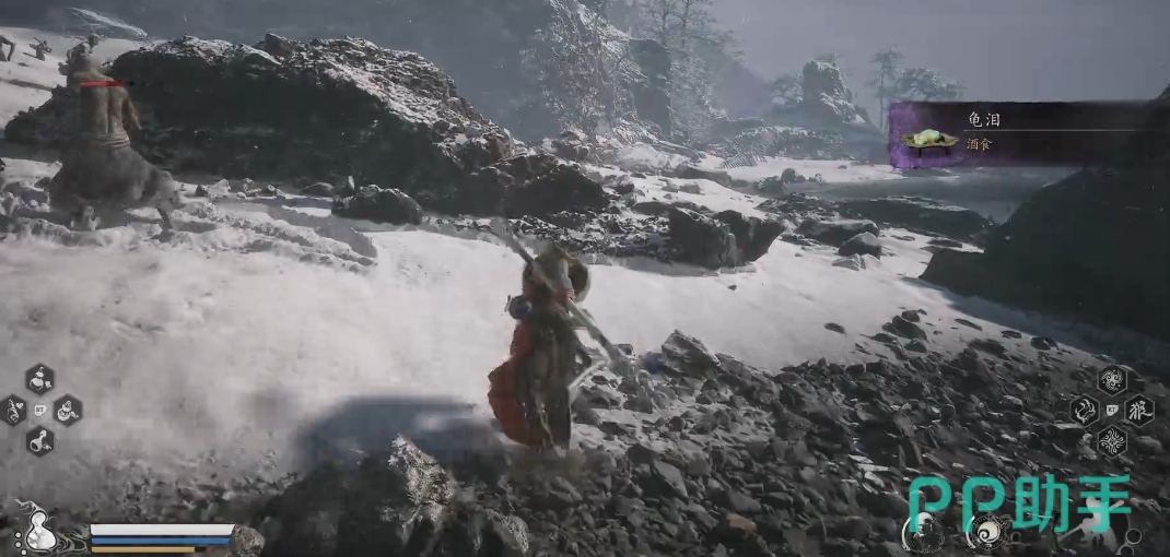 这算是这关的一个小boss,将它击败之后可以继续调查蛇将的骸骨,调查完毕后去回复龟将,龟将将会留下一滴眼泪,这个龟泪是酒类物品,品质很高,在地图上冒绿光,一定要记得拾取一下,拾取完毕后再对话一番这个任务就算是完成了。