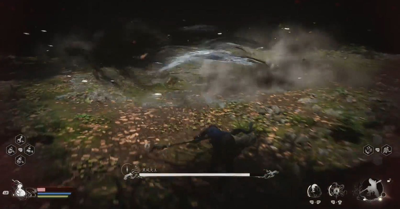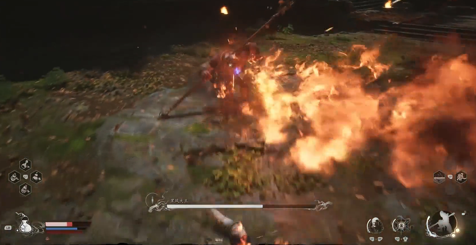 在黑风大王挥舞长枪进行横扫攻击时,玩家可以通过后向闪避来躲避攻击,侧向的话还会被aoe打到。而在黑风大王跳跃砸地时,玩家需要迅速远离攻击范围,以避免受到震荡波的伤害。最后在黑风大王变成风暴时,玩家可以通过不断移动来躲避风暴的追踪,同时寻找机会进行反击。虽然黑风大王输出能力非常高,但也同时比较脆,而且除了风暴比较敏捷之外,攻击间隔较长。而黑风大王的胸前出风的时候是二阶段,会两段横扫,这时最好向前闪躲,能更好的拉开身位。而且全程他的三端攻击的最后一段节奏都会变慢一点,需要慢闪。而喷火的话直接侧身闪躲即可。
