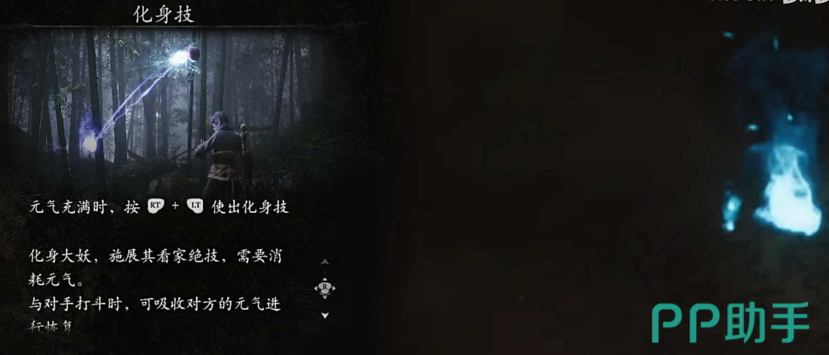 玩家需要在元气充满的状态下才能使用精魄技能。通过按L2+R2的组合键,玩家可以释放化身技,化身为对应的妖怪并施展其看家绝技。这些技能不仅威力强大,还能在释放过程中吸收对手的元气,为后续的战斗提供恢复。