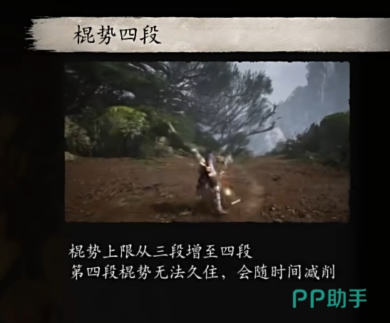 第二个关键技能是定身法,属于奇术类的技能,使用后可以将敌人定身,用来打断敌人的蓄力和技能都非常好用,不过冷却时间比较长,因此需要多点几级。第三个关键技能是棍势四段,这个可以增加棍势的上限,有了棍势之后你就可以更频繁的打出高爆发。