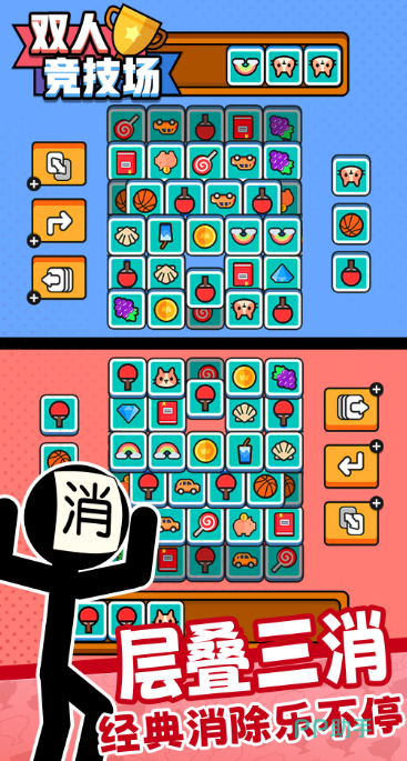 里面装满了我们学生时代最爱的各种双人小游戏,比如桌球和消消乐还有井字棋等等,每一样都能让大家找回童年的感觉。游戏有单人模式和双人模式,单人时,可以和聪明的AI小伙伴对战,双人时,就拉上自己的好朋友,随时随地线上PK。操作简单,上手容易。不管是游戏老手还是新手,都能快速上手,享受其中的乐趣。