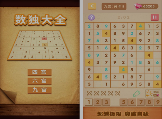 有很多的人喜欢玩数独游戏,也是因为这样的游戏考验玩家的智力,如果自己能够顺利的通关,说明自己是非常厉害的,拥有强大的大脑。这款经典的数独游戏就提供了独特的玩法内容包括。含九宫格、六宫格甚至是四宫格等,如果一开始的时候并不是特别厉害,可以先从简单的四宫格入手,还可不断的挑战不同的关卡。