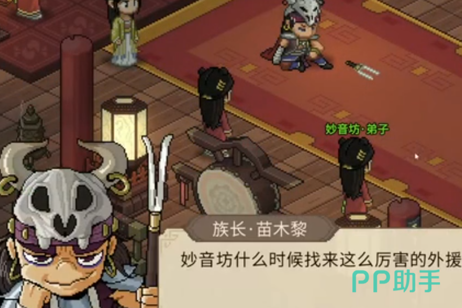 在接下来的荒废庭院剧情中我们不选择帮妙音坊选择帮九黎,因为帮助过他们的缘故后面会和掌门苗木黎有对话,之后就呆在九黎部落里每五天也就是60个时辰和苗木黎进行1次交好。