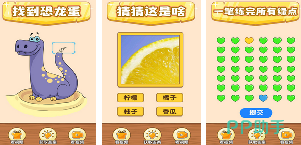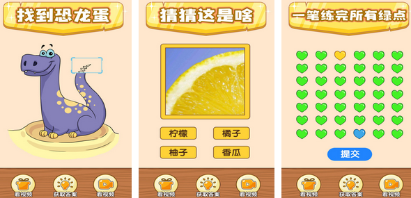 奇葩的不仅仅只有战斗,玩家也需要面对一些奇葩题目。题目的种类较为丰富,不仅有经典的找到恐龙蛋的玩法,玩家还需要看图猜出图片中所表达的物体是什么。在某些与生活常识相挂钩的奇葩题目中,玩家还需要在规定时间内让雪人融化,各种拼图和连绿点带来不少乐趣。