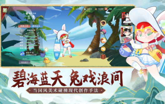 国风美术与现代创作相结合,不少玩家可以看见自带奇葩氛围的搞笑兔子等形象。剧情发展与西游背景相挂钩,玩家可以参加神仙开会等多个有趣的玩法,上演的夺桃对局大战凡是了包括太上老君在内的不少神仙的风采。玩家还可以自由挑选西游人物进行四人成团,整体战斗更显奇葩。