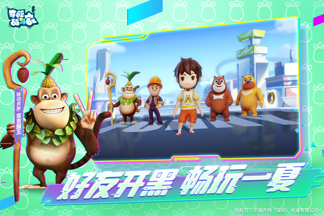 英雄自带奇葩效果,除开本身自带头盔的角色之外,玩家还可以操控吉吉国王和熊出没中的人物进行战斗。武器的搞怪玩法吸引玩家前来战斗,比如说食人花和小黄鸭,玩家还可以使用咸鱼进行攻击。小桥流水类型的单人挑战可以磨练玩家的耐心,更考验合作精神的4V4的路人战将在旧街展开。