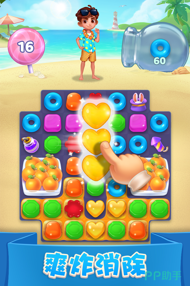 欢快的音乐和有趣的特效,为游戏增添了更多欢乐氛围。游戏画面精美,色彩鲜艳,各种可爱的糖果元素让人眼前一亮。玩家只需将相同颜色的糖果连成直线即可消除,操作简单易上手。丰富多样的关卡设计,每个关卡都有不同的任务和挑战,消除指定糖果、打破冰块、收集水果等。还有众多强力道具和特殊元素,助你轻松通关。在闲暇时光,尽情享受消除的乐趣,放松心情。