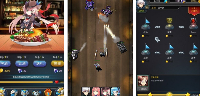 机甲师的招募方面,玩家可以通过比较有趣的食物赠送活动获得好感,比如说啤酒和红酒等等。在编队板块中,玩家可以对已经获得的机甲师进行小队的组建,直接参加闪耀的流星和阿努比斯多个主题的机甲大战,其他挑战模式可以让机甲和武器进行搭配。