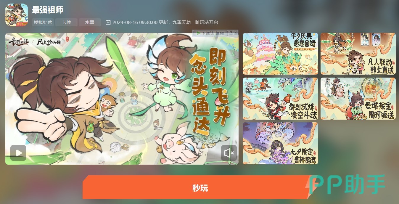 只需注册九游账号,然后直接点击页面上的“秒玩”按钮,变可以从网页端启动最强祖师这款游戏,不用担心客户端太大下载安装慢,也不用担心游戏版本更新要等很久。