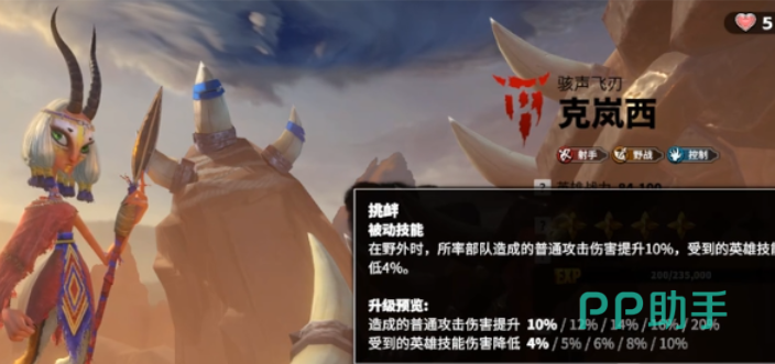 克岚西通过转盘就可以获得,是目前游戏中输出最高的一种兵种,在第1次的战斗中,玩家就可以选择搭配牛头人。除了可能会被埃莫瑞思克制之外,其余真的找不到太多的弱点。是一个实用性很出色的角色,不少的玩家都会竖起大拇指。