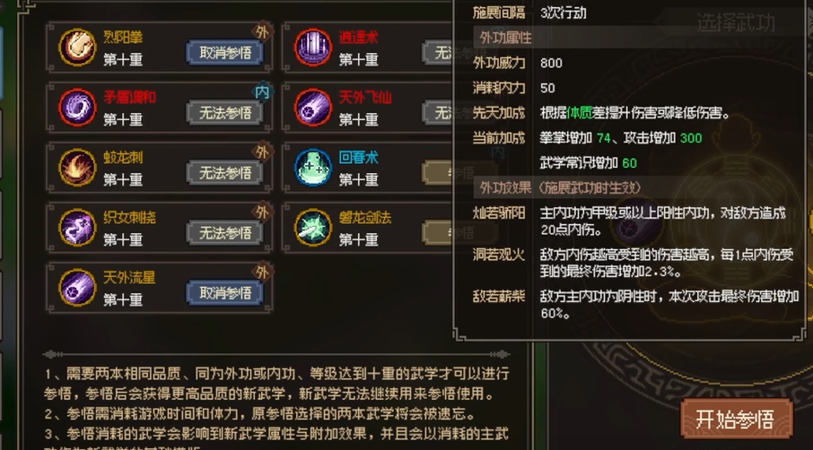 以上就是大侠立志传功法融合攻略的内容了。大侠立志传这次的DLC更新为玩家们带来了更加丰富的武学修炼体验。无论是功法的参悟调整,还是全新的功法融合系统,都为玩家提供了更多的自由和可能性。通过精心搭配和合理选择,你可以在江湖中锻造出属于自己的无上绝学。赶快进入游戏,体验这全新的武学冒险吧。