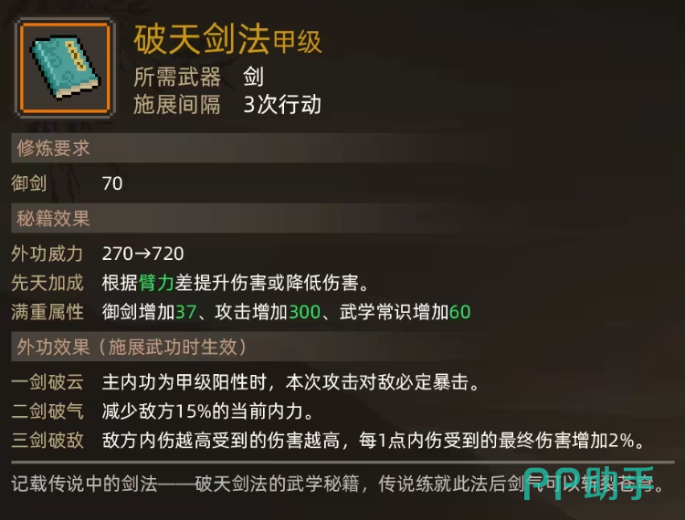 剑法一直是江湖中最具风采的武功类别之一,其中破天剑法尤为出众。加入老头门的玩家可以用3000门派贡献来换取这门绝技。破天剑法的威力让人闻风丧胆,每一剑都仿佛能劈开苍穹。而若想获得磐龙剑法,则需要具备特邀嘉宾的身份,或者集齐十二兽环后进入无名山洞,通过半瓶醋工作室的考验才能获得这一强大的剑术。此外,浮华掠影剑则是儒圣馆中的绝世剑法,只需为凌梦蝶治疗成功,便可获得这门剑技,剑招华丽且威力不俗。