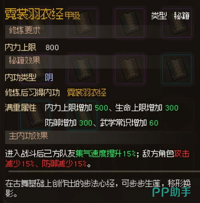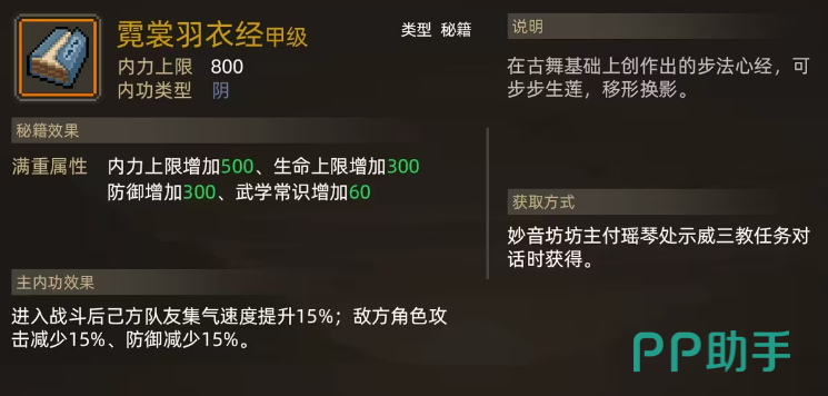 以上就是大侠立志传霓裳羽衣经心法获取攻略的内容了。希望这篇攻略能为你在大侠立志传的冒险之旅中提供一些有用的指导。虽然江湖路远,但只要你善于探索和思考,终将能在这片江湖中找到属于自己的道路。如果你在游戏中遇到了其他困惑,可以关注小编,随时寻找更多的攻略与技巧。