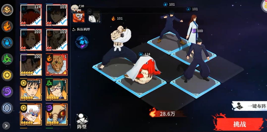 如果大家想要一个战斗效果更快的阵容,那么七海建人+冥冥+禅院真希+西宫桃+乐岩寺嘉伸这些角色的组合不错,这个阵容主要是以风系快速移动为特点的阵容,充分利用了风系角色的高速移动能力,允许玩家在战场上以惊人的速度穿梭,迅速对敌人进行打击,从而实现快速战斗结束的效果,七海建人和冥冥在这一阵容中扮演着核心角色,他们通过精准的控制技能来引导战场的走向,拉动队友的位置,以及在关键时刻使用控制效果来干扰对手,为队伍创造有利的战斗环境。