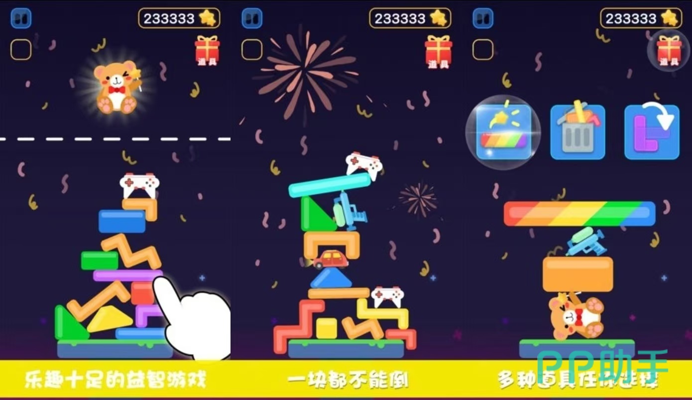 《情侣叠叠乐》游戏的操作是比较简单的,玩家需要把不断降落的物品进行堆叠,必须保证物品能够合理的放稳,并且不能出现倒塌的现象,一旦物品倒塌了游戏就会结束,玩家就需要重新开始。掉落的物品都是一些可爱的积木形象,在关卡中会为玩家出现一个水平线,必须保证在水平线的下方,需要让掉落的物品始终保持平衡,当玩家坚持的时间越久获得的积分就会越高。