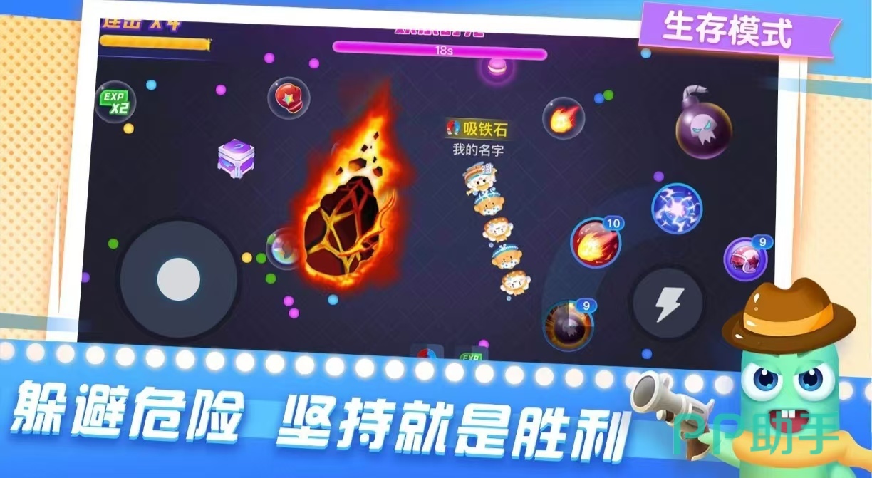《五毒大作战》场景中采用的是十分清新可爱的画风,把贪吃蛇游戏进行全新的升级,玩家需要扮演不同的小蛇在一个像素地图中进行不断的争霸,要不断的向四方进行游走,然后吃食物我来让自己变大。可以为自己的角色穿着不同的皮肤,在战场上可以邀请自己的朋友一起团队作战来消灭敌人,每一位角色拥有着几个不同的技能,能够挑战的模式也非常多,除了小蛇角色还有其他的角色可以扮演,是一场生存较量。