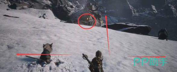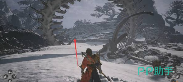 玩家在来到苦海北岸之后,眼前就有三条路,玩家可以选择左右两侧,在探索完毕之后朝着前方走去。如果玩家朝右走就能看到蛇将的骸骨。