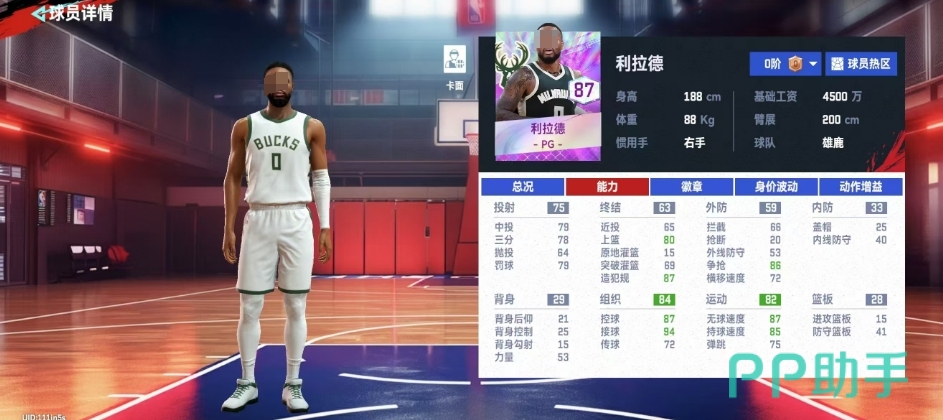 利拉德目前是雄鹿队的一员,他的基础属性中只有接球数值达到了94分,显示出他在接球后能够迅速做出有效的得分动作,除此之外,他的其他属性中只有少数几项达到了80分,这意味着他的基础属性并不能带来非常强势的效果,对于想要使用利拉德的玩家来说,可能只能充分利用他在接球方面的优势,利拉德的背身属性非常弱,其中背身后仰的属性仅为21分,而背身勾射更是低至15分,这些分数表明,在比赛中应当避免让利拉德进行背身进攻,这有可能成为对手利用的弱点。