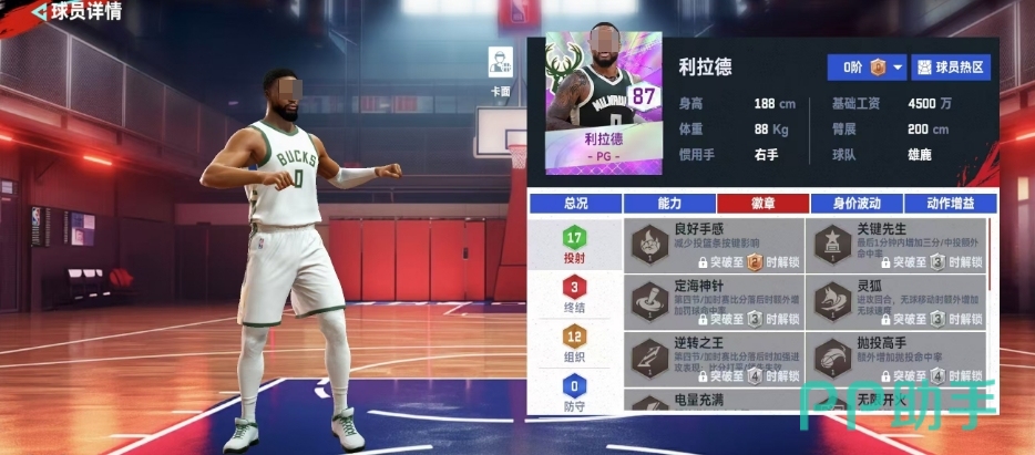 但利拉德凭借其出色的技能和徽章效果,依旧能够在场上发挥一定作用,利拉德的良好手感徽章能够减少投篮条按键影响,这对于保持投篮准确性至关重要,关键先生徽章在最后1分钟内增加三分、中投额外命中几率,这使得利拉德在比赛关键时刻能够承担起更多的得分重任,抛投高手徽章额外增加抛投命中率,四倍镜徽章减少干扰带来的中投投射命中率下降,而动态射程无限徽章则能在非定点状态下降低三分投射时距离带来的影响。