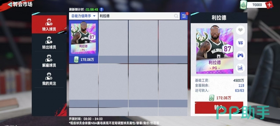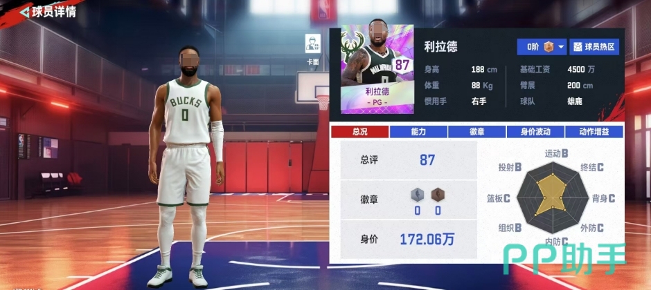 利拉德在游戏中的评分为87,这使他在紫色球员中的身价显得相对合理,仅需172.06万即可在转会市场上获取这位球员,尽管身价不高,但利拉德作为紫色品质的球员,基础工资依然保持在4500万,但是从游戏整体效果来看,利拉德确实存在一些短板,这可能使得除了特定队伍外,他并不是一个性价比极高的选择。