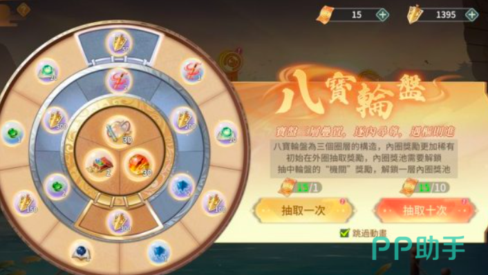 首先玩家们需要了解的是八宝轮盘是一个限时的活动,小编建议玩家们在参与前了解活动详细规则以及活动机制。玩家在八宝轮盘中可以通过抽奖券进行抽奖,奖券需要通过完成系统指定的任务获得,也可以去商店购买奖券。