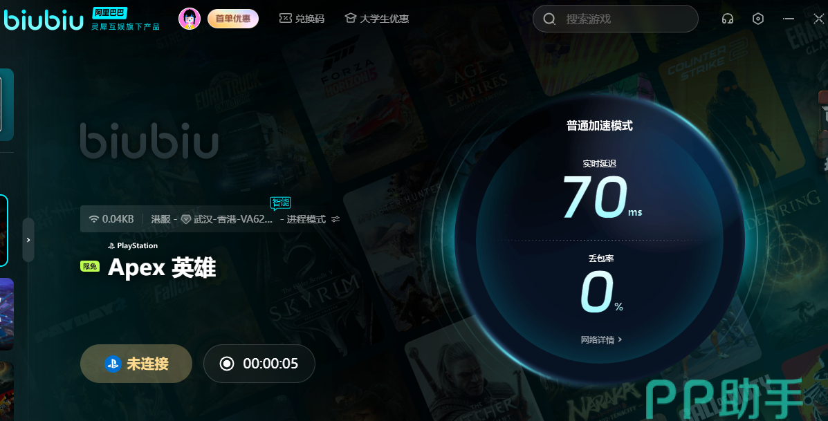 APEX这款游戏大家喜欢,现在就去下载吧,不管是用pc端的下载入口,还是主机端的,我们通过使用biubiu加速器,都是可以得到提速的哦。而且这个效果不仅是作用于下载环节,我们在玩游戏的时候,也会得到降低延时的服务效果,那各位在玩的时候,再激烈的战斗,也会很流畅的进行,大家赶紧用起来吧。