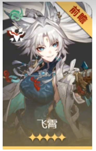 先来了解一下官方的预告,此次的2.5版本前瞻直播节目会在8月30号播出,根据目前得到的信息来看,新角色卡池方面,这个卡池还是老样子,分为上下两半部分,首先是上部分卡池,这卡尺中的角色为飞霄,这位角色可以说是大家的老朋友了。