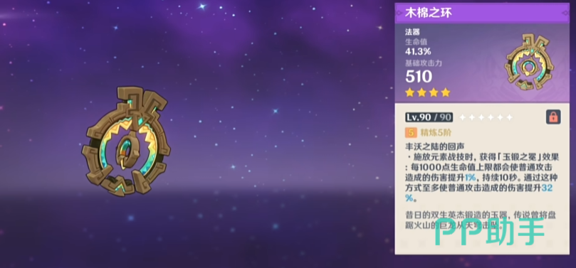 木棉之环,主词条是41.3%的血量,特效用战技获得特殊效果,携带者如果有3.2万血可以获得最多32%的普攻增伤,持续10秒。这个效果完美契合新版本的几个角色,比如说纳塔鲨、鲨鱼妹、玛拉妮。如果不打算抽玛拉妮专武的话用这个挺不错的。