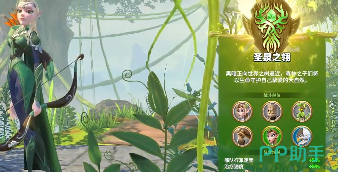 精灵族是属于速度最快的种族,精灵族本身的天赋是增加治疗和行军速度。他们本身的移动速度和攻速都是比较快的,但是防御能力除了一些特殊兵种外都比较脆,这个种族开荒能力一般,但是中后期作战能力很强。