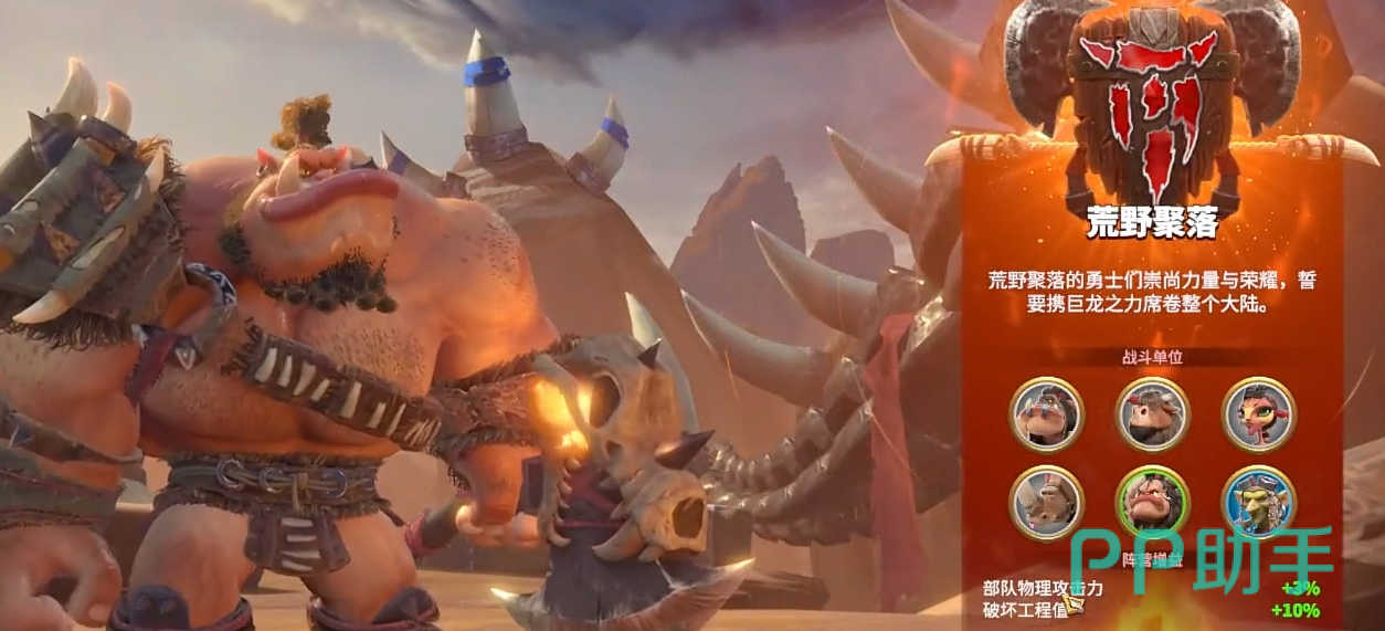 最后的兽族是属于血防较高。他们的天赋是增加收获的产值。这个能力是属于越后期越有用。兽族本身的移动速度不算快,但是他们的步兵除了速度外整体的属性都不算低,在前期的攻防中有着优势。