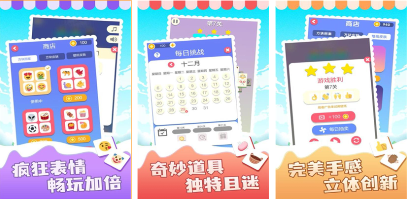本作是款可以消除表情包的单机竖屏消消乐主题手游,超级独特的关卡设计给玩家带来了休闲益智的氛围,关卡模式也超级丰富给消除游戏爱好者带来了别样的快感,有趣益智的创新消除玩法轻松好上手,动感十足的音效给人以身临其境消除的快感,如果你玩腻了图片的三消主题手游就试试表情消消乐吧。